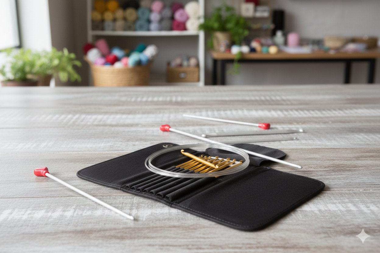 Mezi kvalitní nástroje pro tuto techniku patří tuniské háčky značky Addi, často označované také jako addiTun. K dispozici jsou klasické dlouhé háčky pro práci v řadách, oboustranné varianty pro speciální techniky i systémy s výměnnými lanky, které umožňují přizpůsobit délku nástroje konkrétnímu projektu.