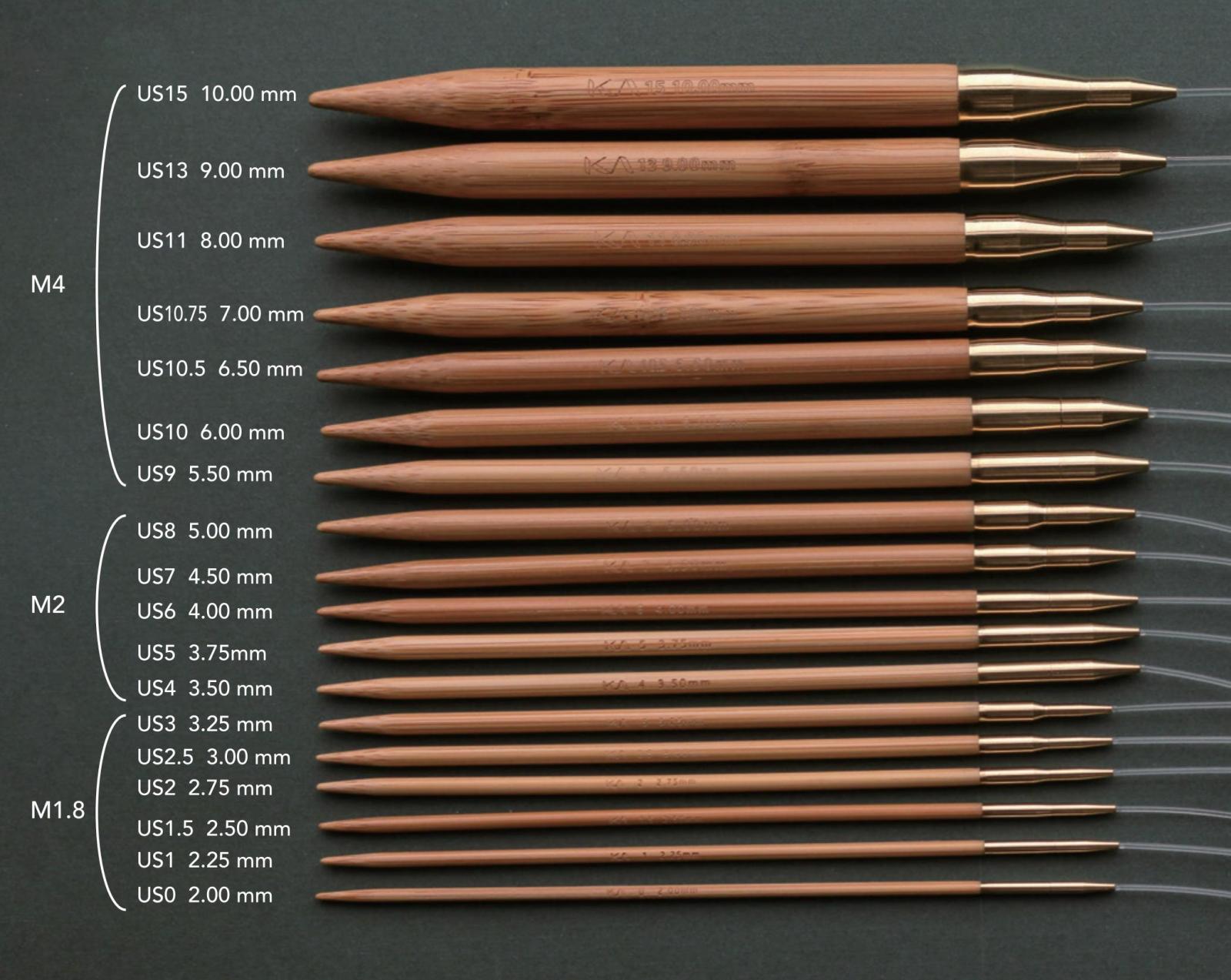 - M2 – pro střední jehlice (cca 3,25–5 mm), nejběžnější typ pro většinu úpletů.