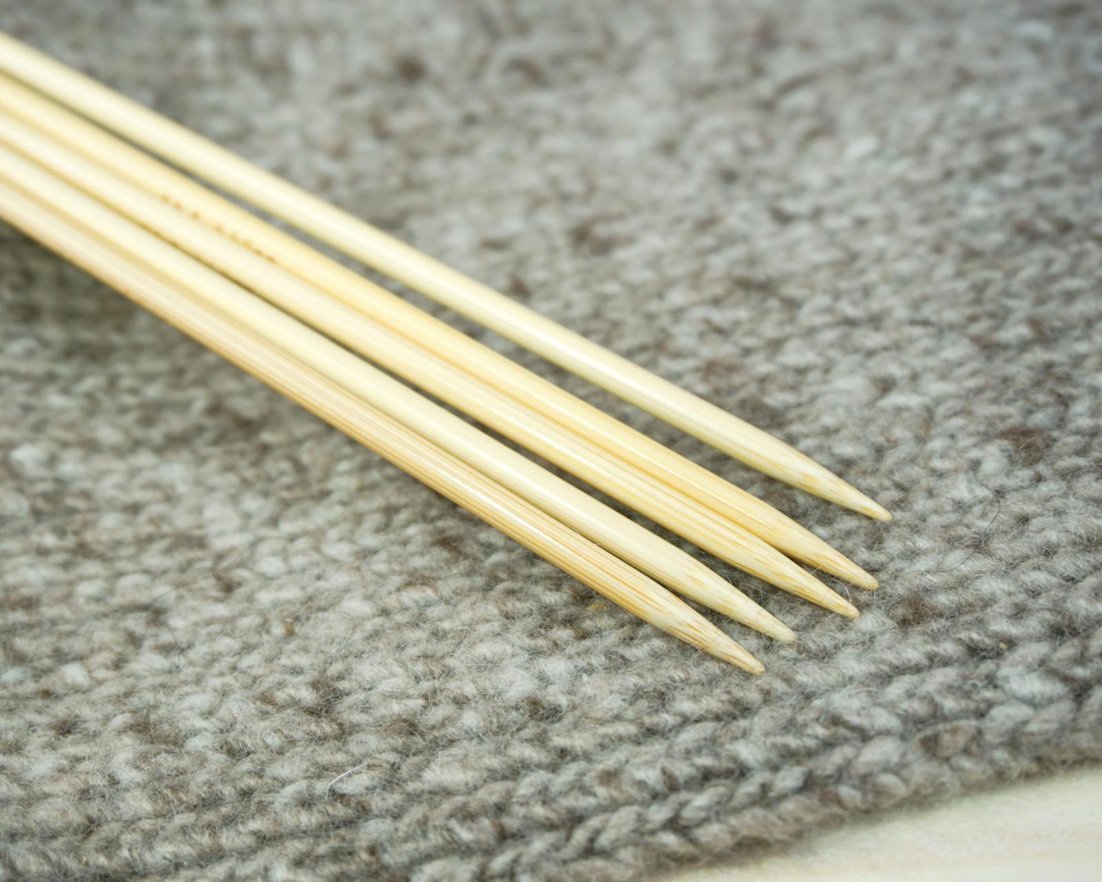 Kvalitní ponožkové jehlice japonské značky Seeknit. Povrchová úprava zdůrazňuje bambusovou přirozenou barvu a jemnou strukturu.