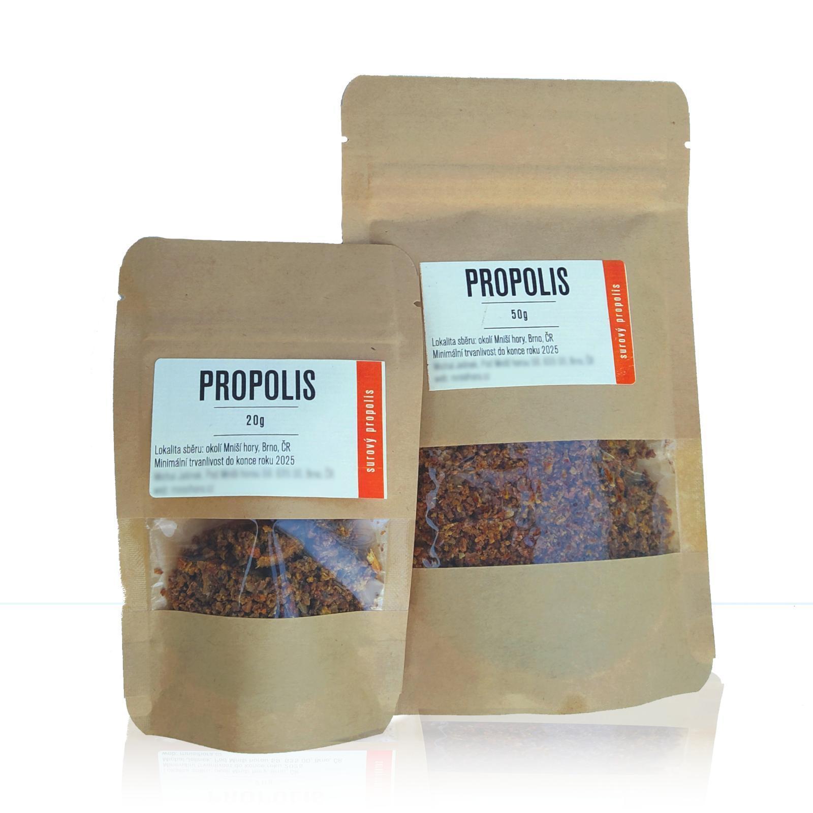 Surový propolis je přírodní látka sbíraná včelami z různých druhů dřevin, rostlin, květů a léčivých bylin, která slouží včelám k ochraně úlu před viry, bakteriemi, kvasinkami a plísněmi. Díky bohatému složení bioaktivních látek je propolis ceněn pro své blahodárné účinky a příjemnou, aromatickou vůni. Každý propolis je unikátní – jeho barva i složení se liší podle oblasti a typu rostlin, ze kterých byl nasbírán. Čerstvý propolis mívá hnědou barvu s přechody do červené až žluté.