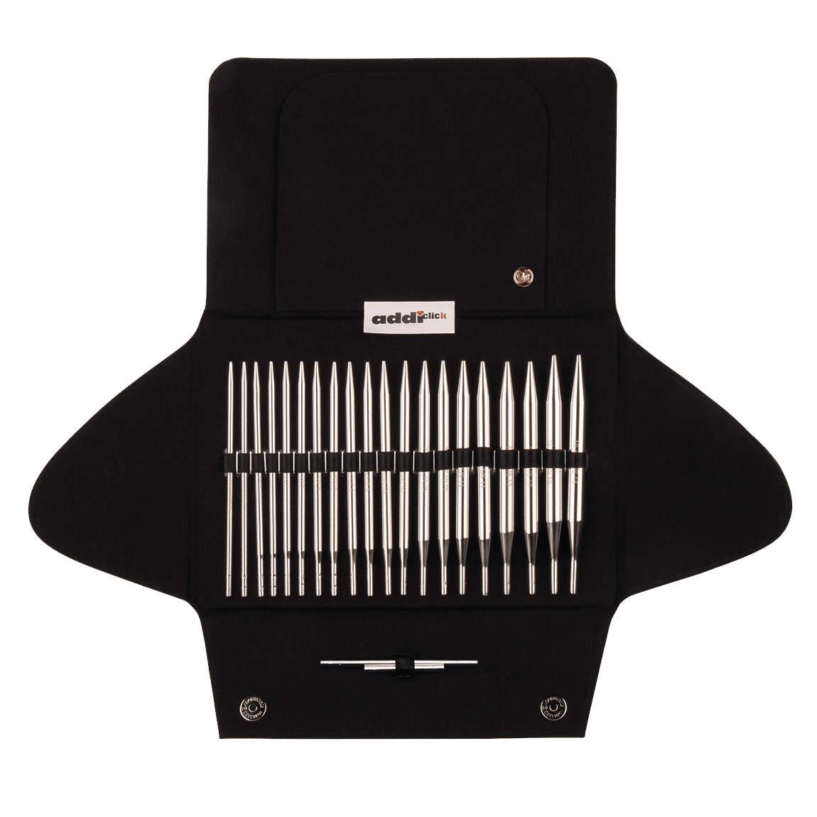 addiClick Basic Long je klasická, univerzální sada vyměnitelných kruhových jehlic s dlouhými jehlicemi, oblými špičkami a patentovaným klikacím systémem addiClick, který umožňuje spojovat jehlice a lanka jednoduchým otočením. Po zasunutí uslyšíš pevný “click”, který garantuje spolehlivé spojení během pletení.